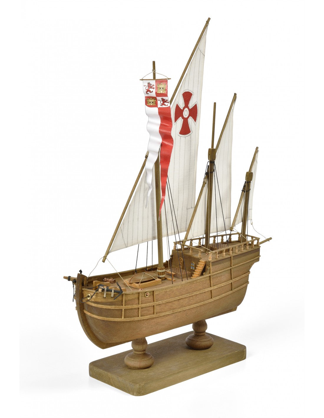 Niña, or the little one, is the ship that housed Christopher Columbus’s cabin. At the beginning, she featured the characteristic Latin sails, but afterwards she was equipped with square sails. Being a small size caravel, such as the Pinta was, she was very agile in the manoeuvers, but she need a remarkable ballast to withstand the stormy sea. Niña is a milestone in the history of sailing and of the whole humanity.