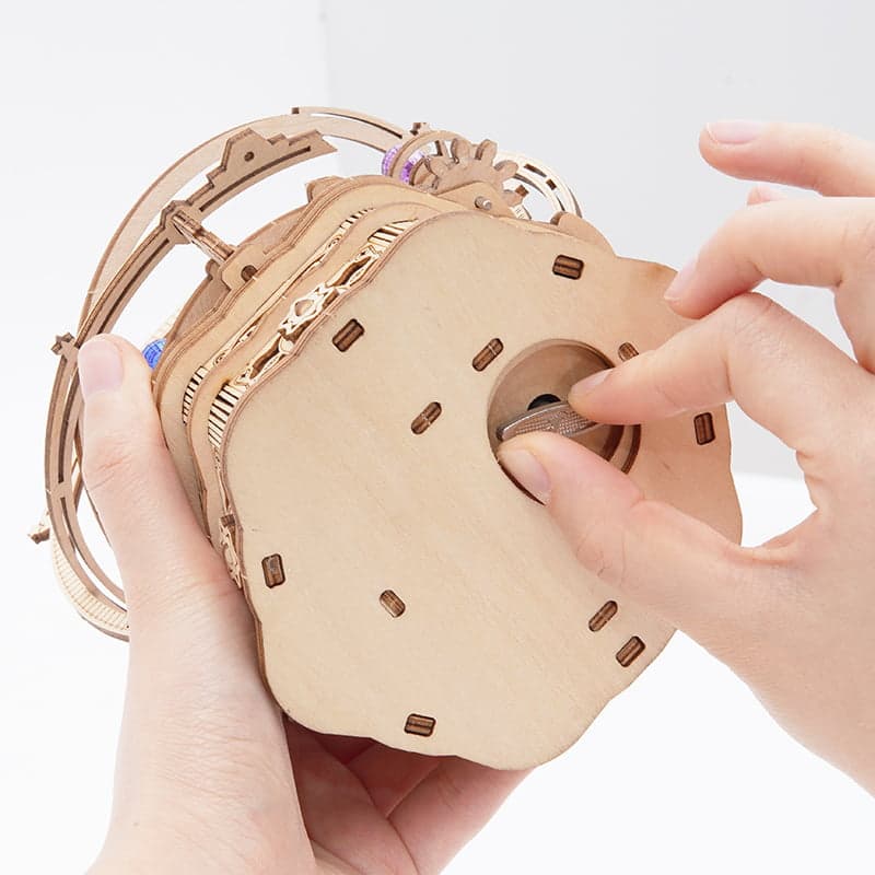 SOLAR SYSTEM – The music box has revolving stars of different colors, which takes you to unlock the secrets of the universe. Manually rotate the knob to play soothing melody.