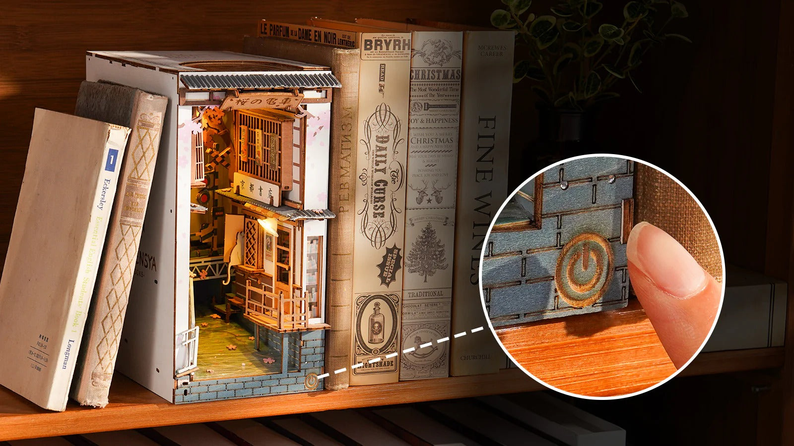This Robotime-Rolife Sakura Densya TGB01 is a DIY 3D wooden book nook kit that you can build with your own hands. After finishing this work, it will show a beautiful scene of Tokyo streets in Spring. This book nook will be great home decor for a bookshelf or any other room space. It will also look amazing when you put it in the dark with the warm lights on. More importantly, this bookshelf insert can help create your imagination and increase creativity, which is a perfect hands-on gift for kids & adults.