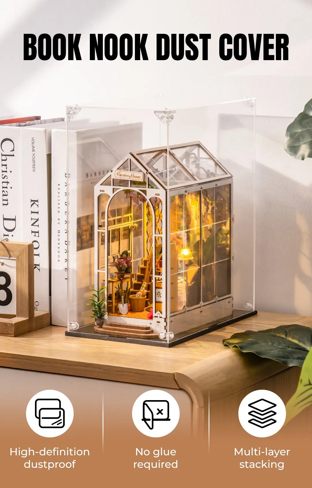 Keep your DIY Book nook dust-free with our versatile and stackable dust cover. Suitable for all book nooks.