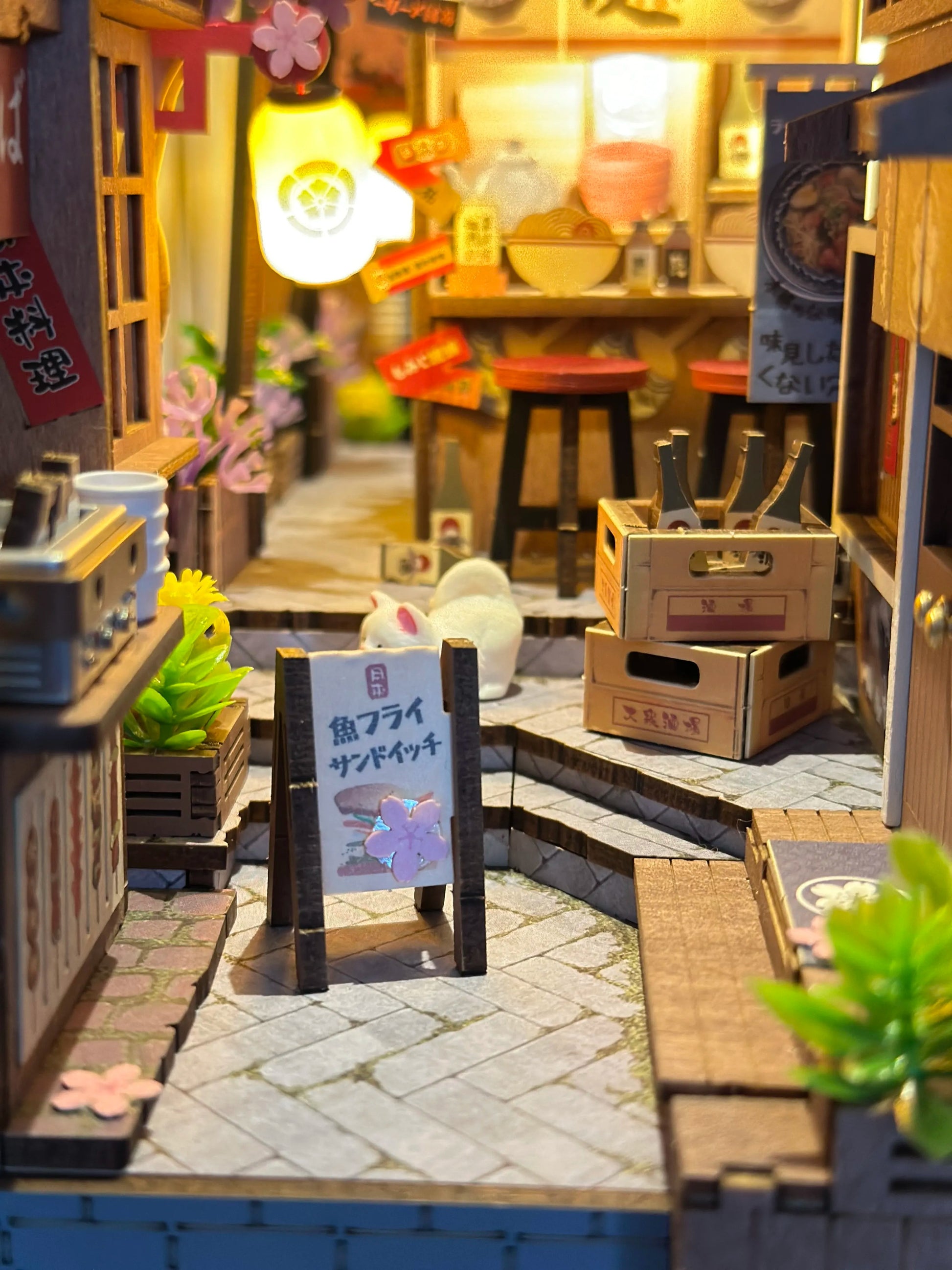 Come roam the streets of Japan where delicious and authentic street food abound. The Sakura Wine Alley is a 249-piece DIY book nook that invites you to immerse in a lantern-lit path of tradition, taste, and toasts!